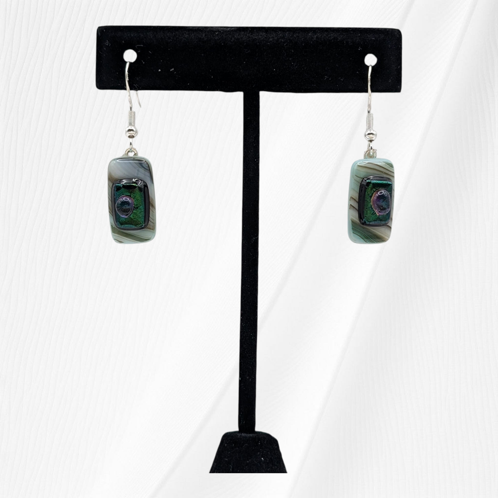 Handmade fused glass drop earrings with Sterling Silver hook.